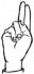 На ћирилици написано ЈАБУКА ЦВЕТКОВИЋ састоји се из 15 слова [?]. Исписано ћириличном једноручном азбуком за глувонеме: